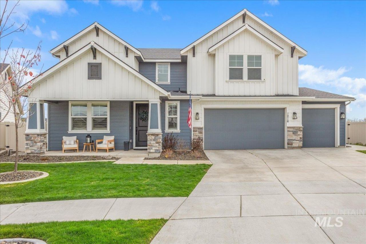 Welcome home to this beautifully maintained property, perfectly situated on a spacious half-acre in one of Stars most sought-after locations. Just a few years old, this home offers the ideal blend of comfort, functionality and timeless charming style. The heart of the home is a stunning kitchen featuring a huge oversized island?perfect for morning breakfasts, homework time, and gathering with family and friends. The adjoining living room invites you to relax with a beautiful fireplace that creates a cozy, welcoming space for everyday living. A formal dining space adds to the charm of this home and a dedicated office/music room make it both functional and convenient. All bedrooms are upstairs and a 2nd suite with private bathroom make an ideal bonus room or guest suite. Tucked away for privacy, the oversized primary suite offers a true retreat with a secluded feel and lovely mountain views. Step outside and youll find a backyard designed for making memories. From the sport court for endless play, to the raised garden boxes ready for planting, to evenings spent around the fire pit under the open sky?theres something here for everyone to enjoy including gorgeous mountain views. With plenty of room to spread out, no immediate back neighbors, and a location close to parks, schools and all that Star has to offer, this home truly checks all the boxes for comfortable, connected living.