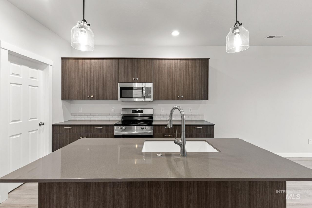 Get Lucky with 3.49% ? promotional rate available! Ask a Sales Specialist for details. Enter into a brand new home in Kuna, Idaho and enjoy its benefits and stress free living! Unlock more free time with a low-maintenance life in the Selkirk 1696! The open concept main level is excellent for entertaining or for a cozy night in. The well-appointed kitchen offers an island overlooking the living room & dining area, spacious corner pantry, and easy access to the patio. The kitchen comes with stainless steel appliances and stylish solid surface countertops, adding both functionality and aesthetics to the kitchen. Upstairs you are greeted by a sprawling loft space and all three bedrooms. The 2nd level laundry room is conveniently situated to all the bedrooms, meaning fewer trips up and down the stairs. The primary suite is well appointed with an en suite bath and walk-in closet. Enjoy a higher level of living with low maintenance landscaping in the Selkirk, making it the perfect choice for those seeking convenience and comfort. Photos are of the actual home!