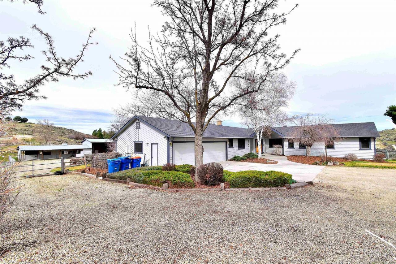 Single-level living in the coveted foothills of Eagle ? offered for the very first time by its original owner. This thoughtfully designed 5.6-acre horse property captures sweeping foothill views while delivering privacy, functionality, and convenience just minutes from town. Designed with the equestrian in mind, the property features multiple fenced pastures, a well-appointed barn with automatic stall waterers, dedicated hay storage, tack room, and ample trailer and RV parking. Water rights and an efficient layout make this acreage both practical and easy to maintain. The home and grounds have been meticulously cared for, with mature landscaping that enhances both beauty and seclusion. A whole-house natural gas generator ensures uninterrupted power to the entire property ? providing peace of mind in every season. With no HOA and only minimal CCRs, this property offers rare flexibility in a premier foothills setting. Ideal for multigenerational living, it blends the serenity of country life with close proximity to downtown Eagles amenities. Located in the highly desirable Stillwell Estates area, surrounded by vineyards and open space, the property is rich with wildlife ? deer, turkey, quail, and more roam the rolling foothills. This is a rare opportunity to own an affordable acreage in one of Eagles most exclusive and private foothill communities.